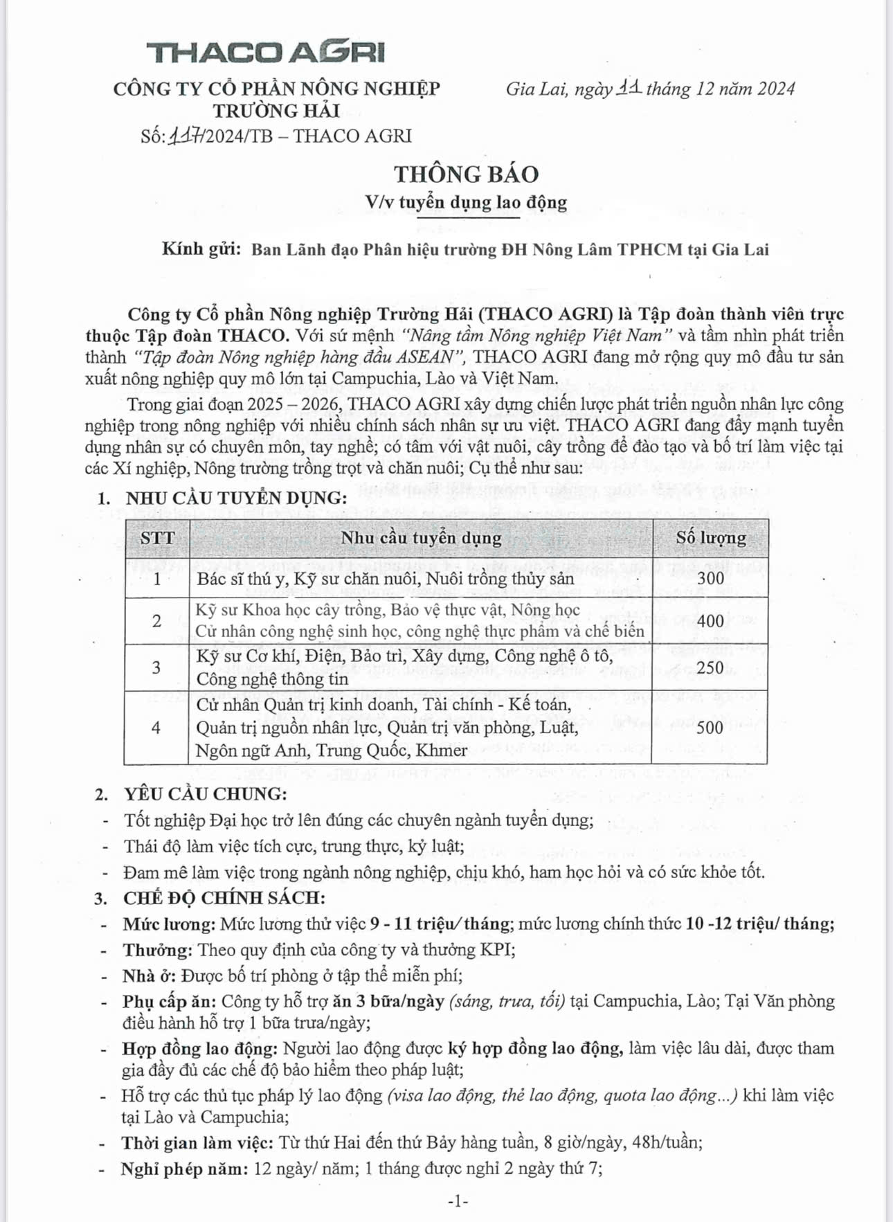 Thông tin Tuyển dụng: Công ty cổ phần Thaco Trường Hải tuyển dụng